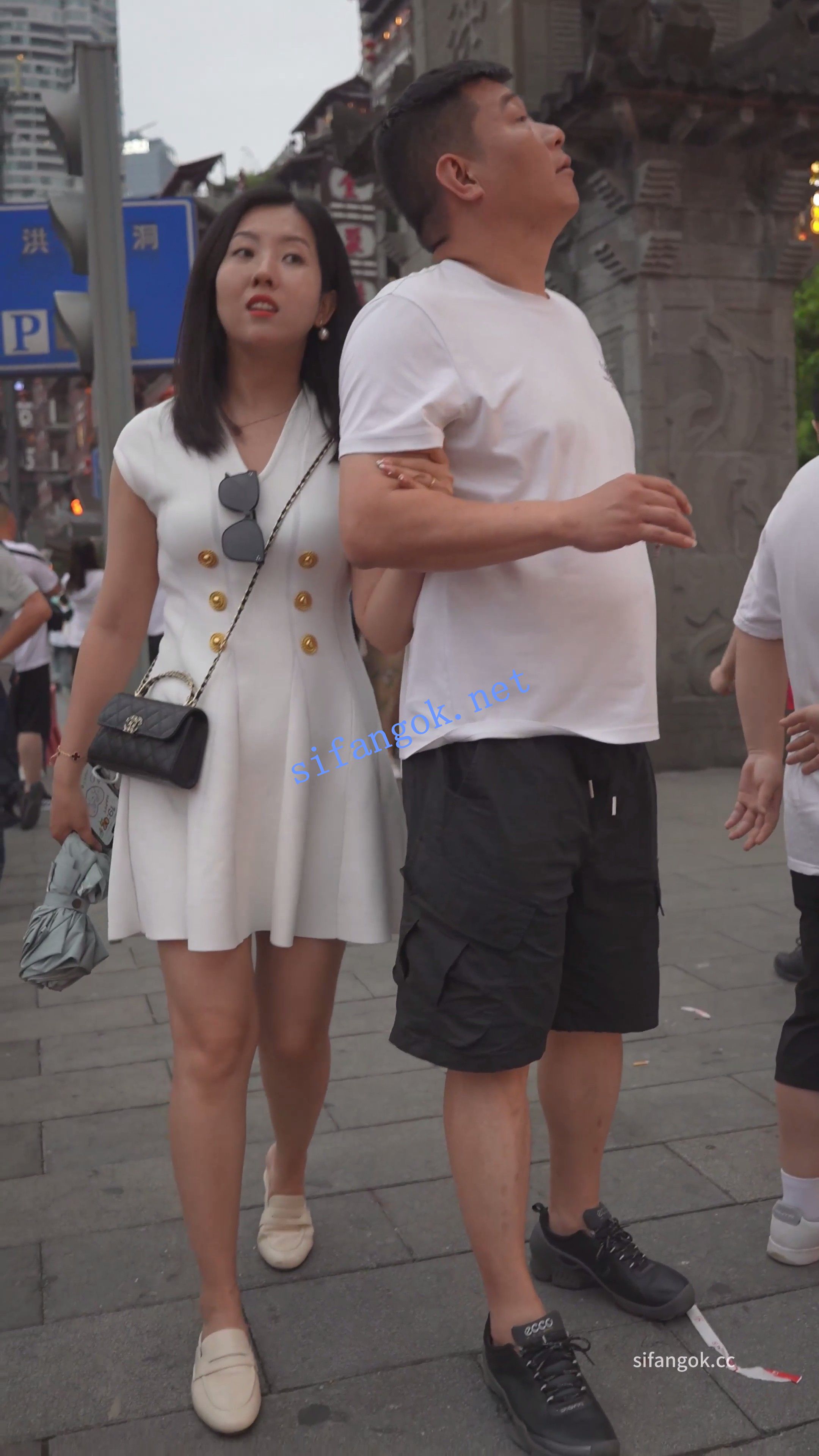 白裙少妇景点弯腰拍照贴镜头,一路跟拍纯白色内裤。。