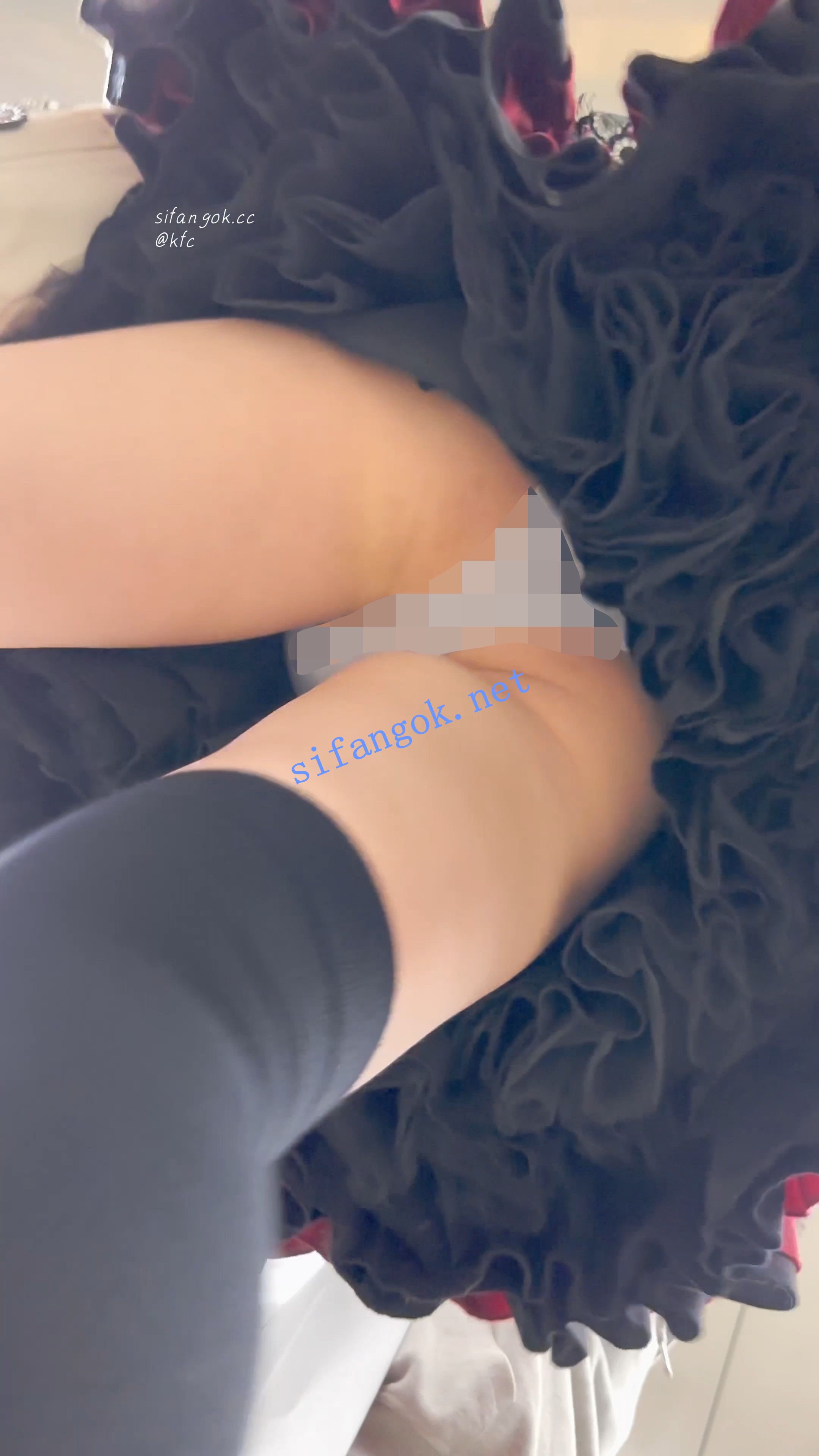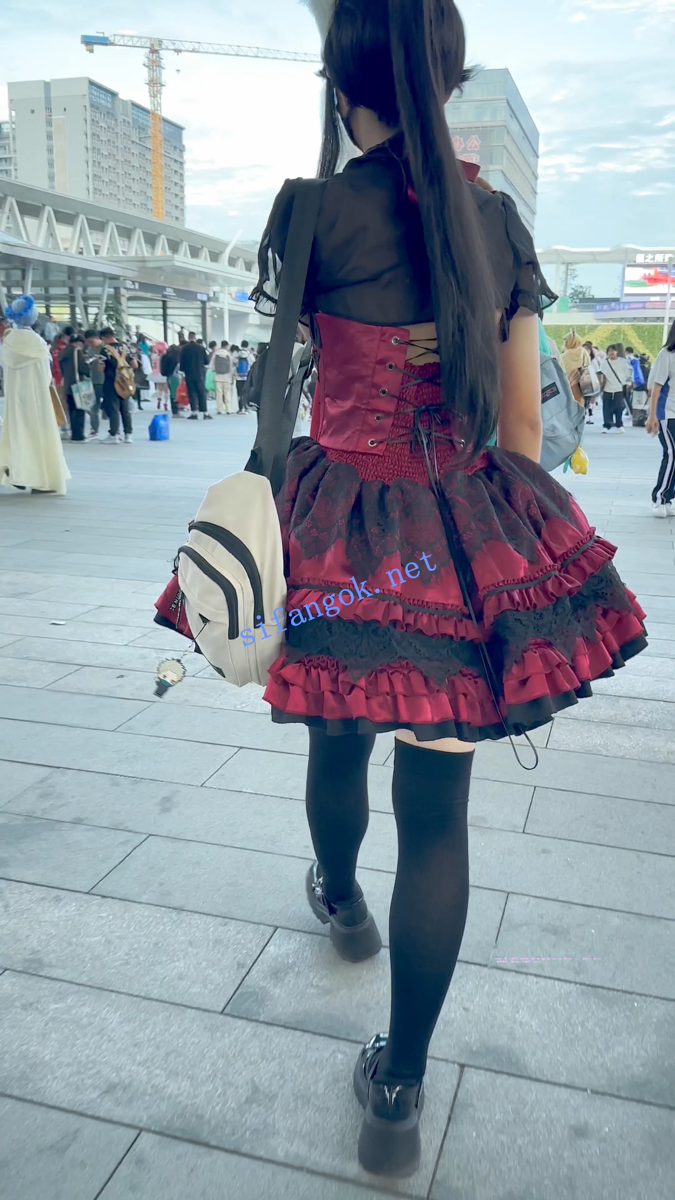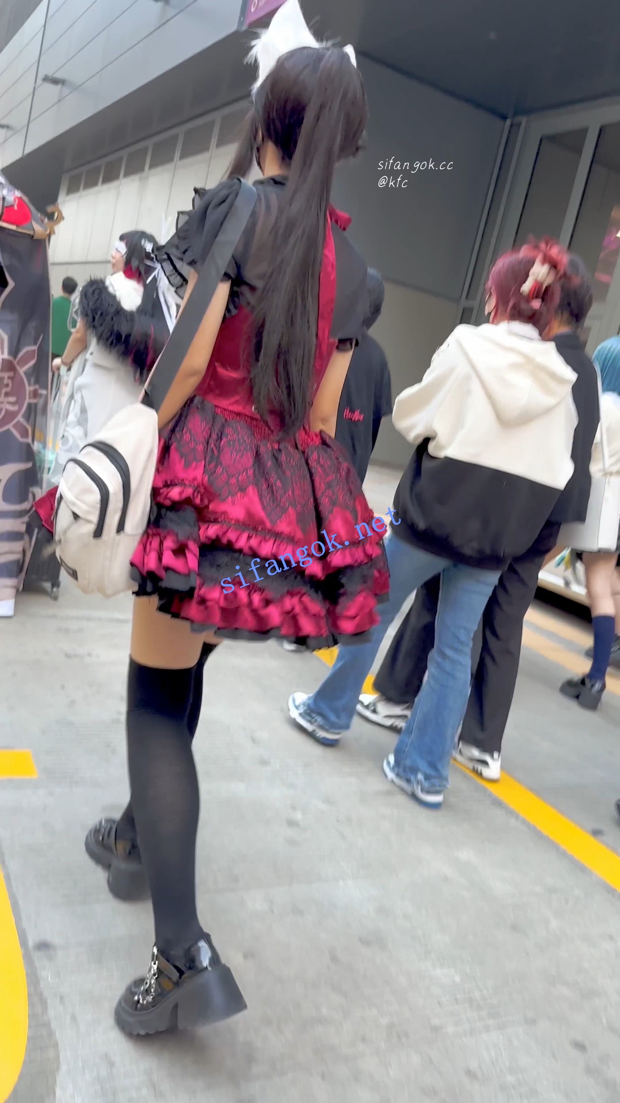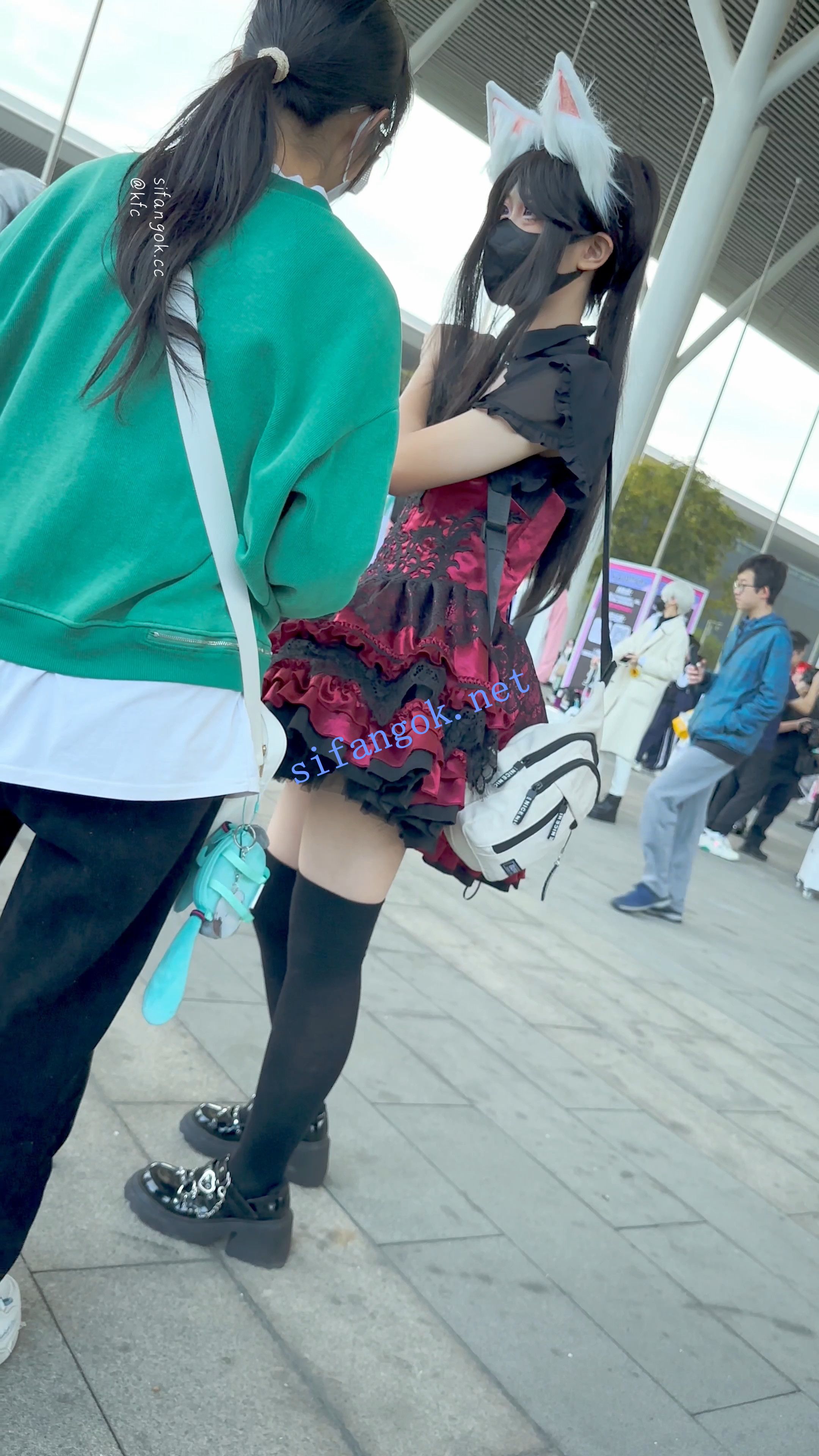【KFC】短裙COSER展厅外聊天·没发现脚下的相机·翘屁股灰窄内