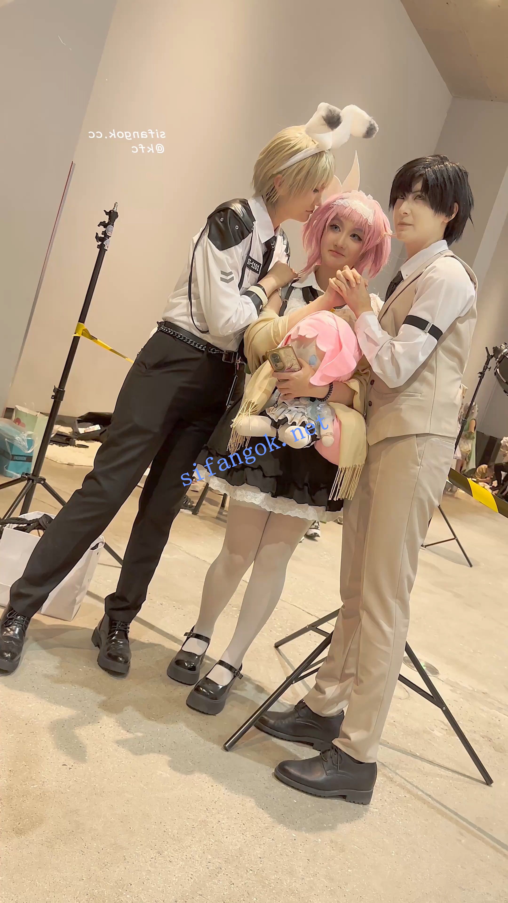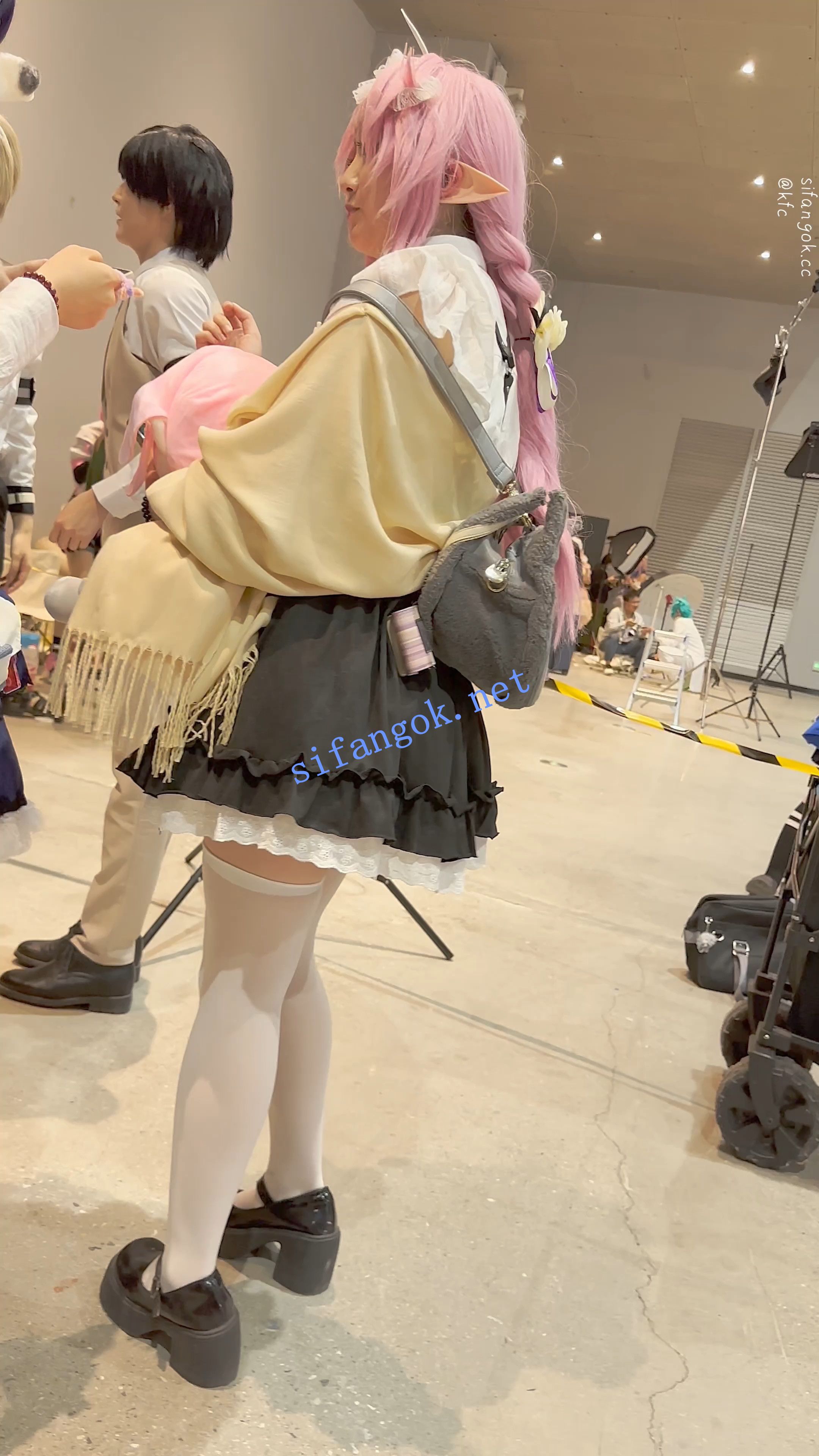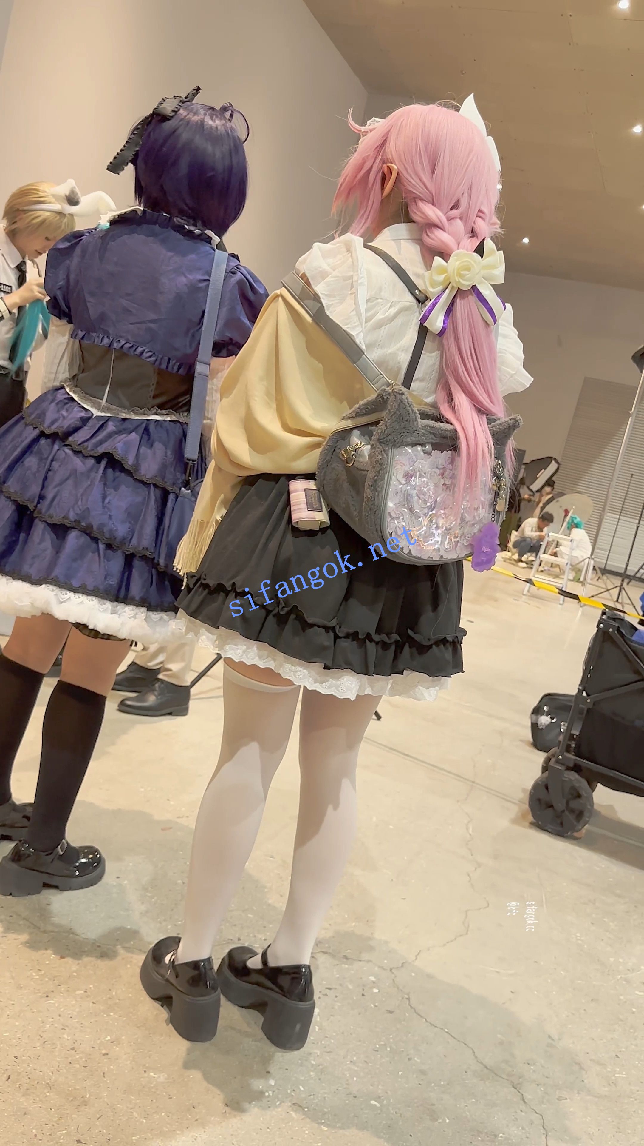 学生妹COSER逛街拍照·过膝白丝·翘屁股露出白色内内
