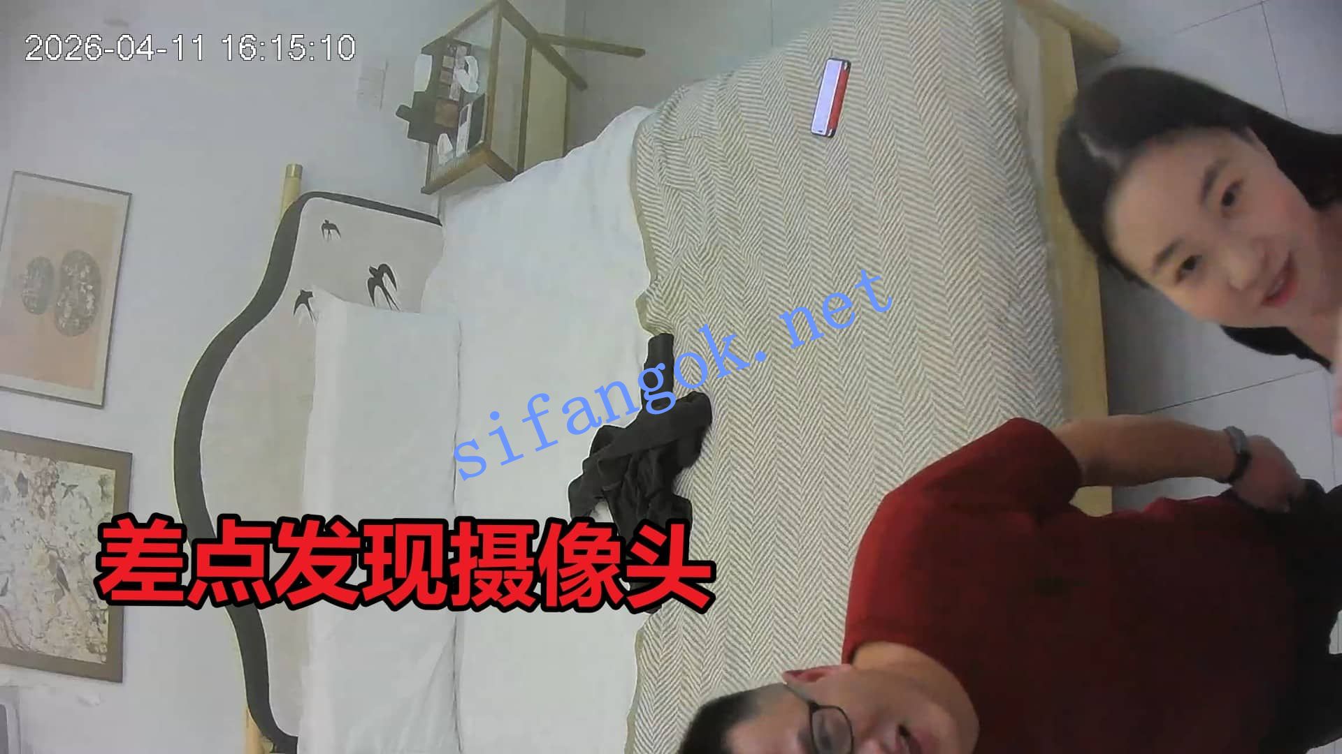 然后女的开始走到镜头前面,指着镜头,开始分析是不是摄像头